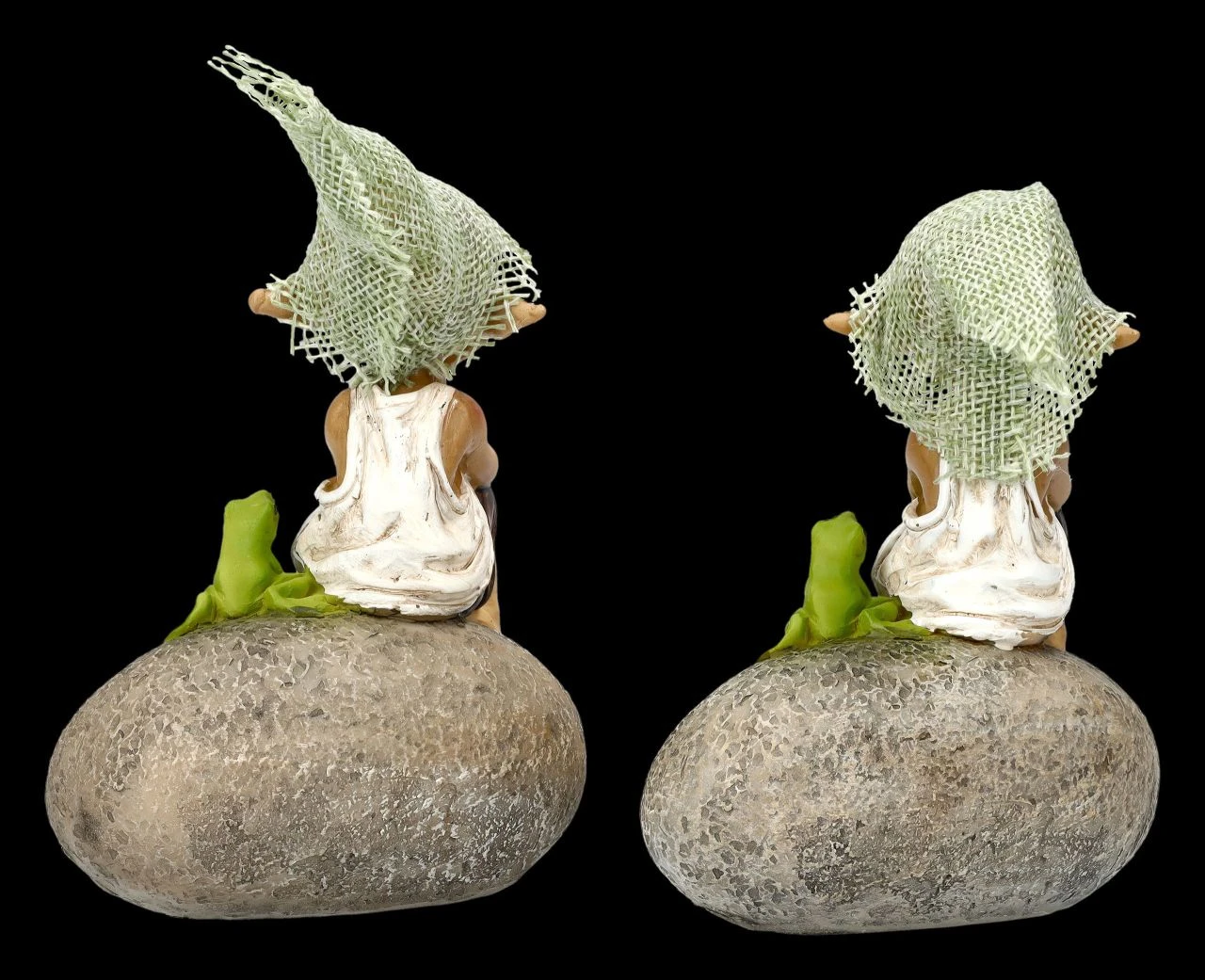 Verträumte Kobolde sitzen auf Stein mit Frosch