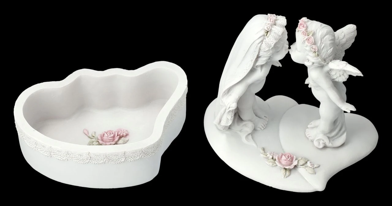 Weiße Schmuckdose: Putten Hochzeit