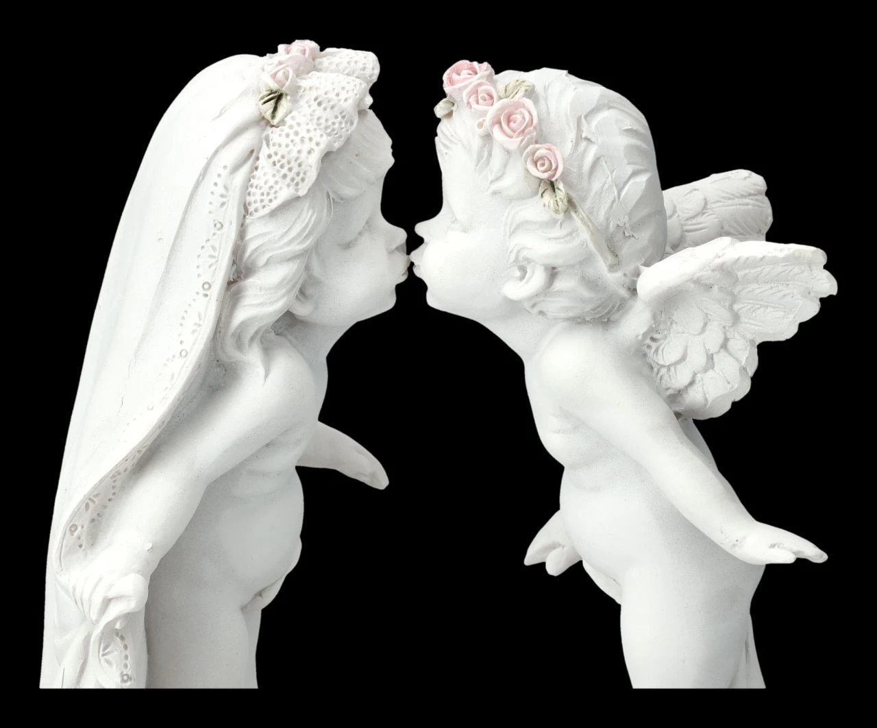 Eine wunderbare Gelegenheit für einen Heiratsantrag oder auch als Geschenk, um die Eheringe perfekt zu präsentieren, ist diese fantastische romantische Schatulle mit den küssenden Putten. Mit dem Puttenbrautpaar ist diese schöne Schatulle 17 cm hoch, 13 cm breit und 8,5 cm tief. Sie wurde aus liebevoll handbemaltem Kunststein (Polyresin) gefertigt. Innen hat sie mit H 3,5 cm x B 10 cm x T 6,5 cm aber auch Platz für kleine romantische Erinnerungsstücke.