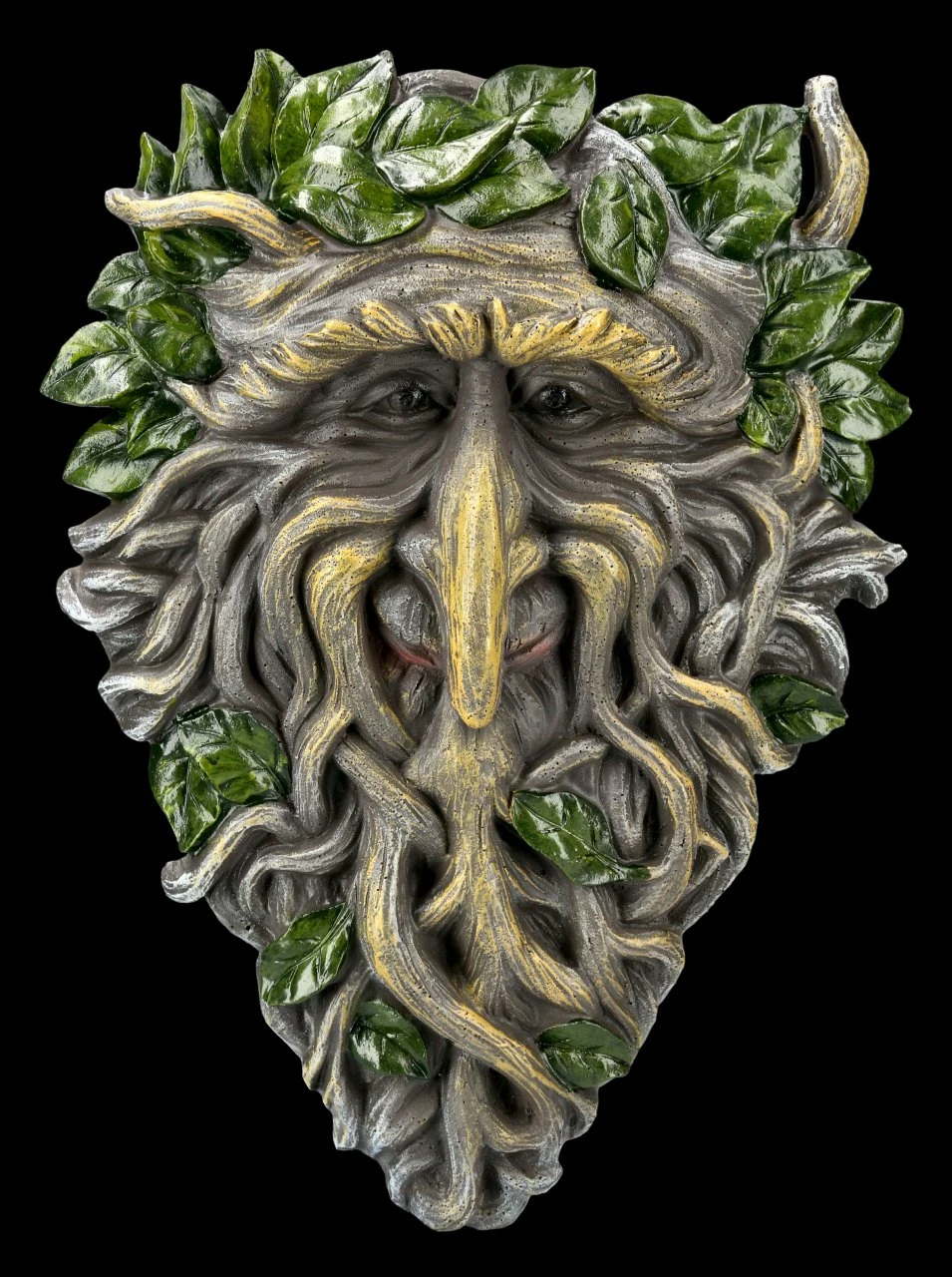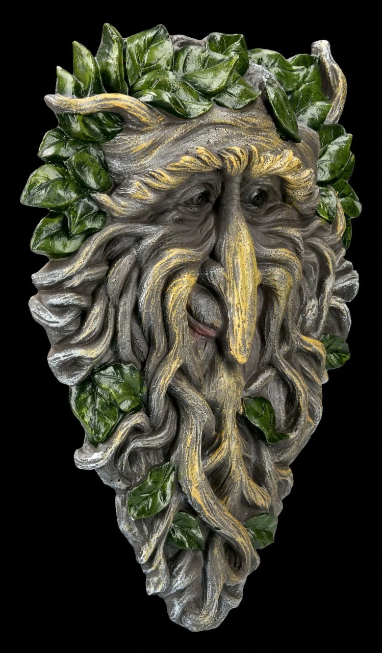 Milde lächelnd wacht der Greenman über sein Zuhause. Der König der Baumgeister aus Kunststein (Polyresin) ist ein fantasievoller Hingucker an der Wand. Das 26,5 cm hohe, 19 cm breite und 4,5 cm tiefe handbemalte Wandrelief zum Hängen bringt ein Stück Natur in Ihre Wohnung.