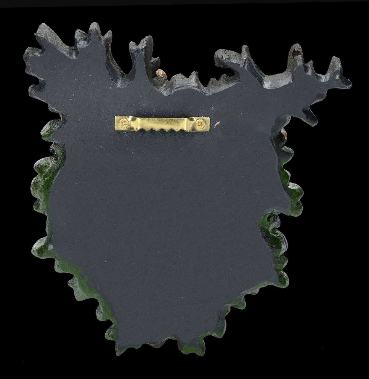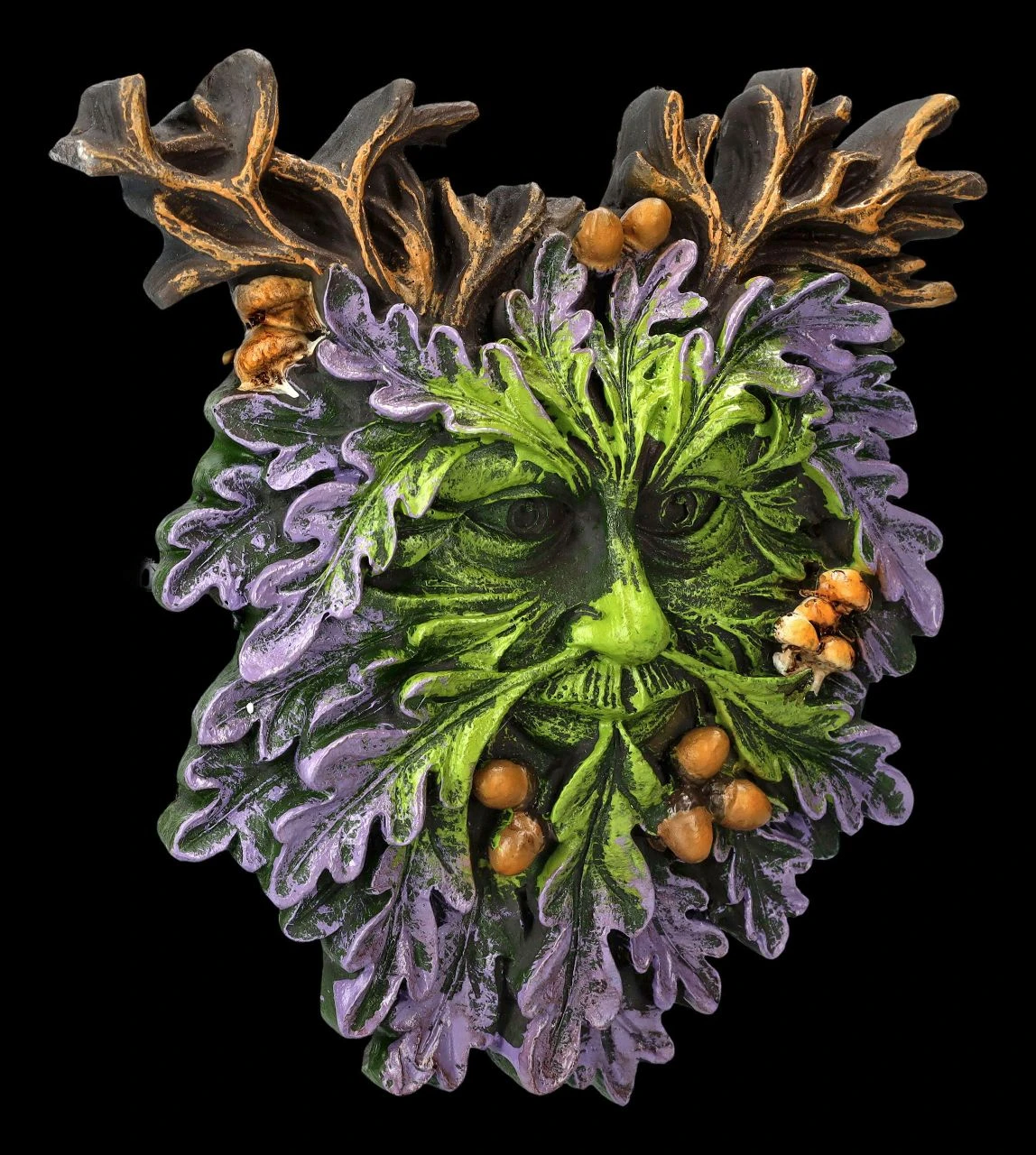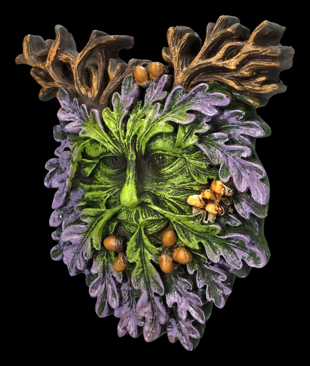 Eicheln und Pilze sind auf den mit herbstlich gefärbten Eichenblättern umrahmten Gesicht des Baumgeistes zu entdecken. Der Baumgeist wird in vielen Traditionen auch als Herr des Waldes, als Greenman oder auch als der ‚Gott mit den Blättern‘ bezeichnet und verehrt. Als Lichtwesen steht er für Harmonie und die wichtige Verbindung von Geist und Natur. Die 15 cm hohe, 14,5 cm breite und 2,5 cm tiefe Wanddeko mit dem Baumgeist wurde aus detailreich handbemaltem Kunststein (Polyresin) gefertigt und ist zum Hängen. Sie ist auch ein tolles Geschenk und passt perfekt in jede Pflanzenecke.