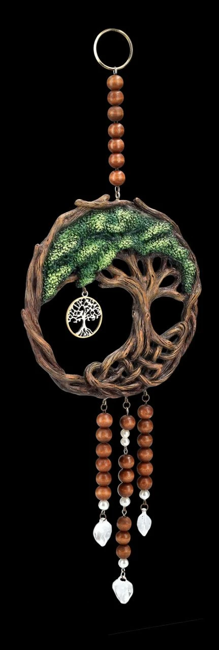 Die Wanddeko mit dem Lebensbaum im Zentrum ist ein wunderschöner Traumfänger aus der Studio Collection von Veronese. Der Lebensbaum ist in zahlreichen Kulturen und Religionen ein uraltes mythisches Symbol für Wachstum, Fruchtbarkeit, Unsterblichkeit und damit für das Wiedererwachen in der Natur. Die Wurzeln des Lebensbaums bei diesem herrlichen Traumfänger bilden einen Kreis, der sich über der Baumkrone schließt. In den Zweigen des Baums hängt ein Medaillon, das wiederum den Lebensbaum zeigt. Der 35 cm hohe, 13 cm breite und 2 cm tiefe Traumfänger mit dem Lebensbaum aus bronzierten und schön coloriertem Kunststein (Polyresin) hängt an einer mit Holzperlen verzierten Metallkette. Als Zeichen der Hoffnung für ein gutes Wachstum und damit für eine glückliche Zukunft ist dieser schöne Traumfänger mit dem Lebensbaum auch ein wunderbares Geschenk