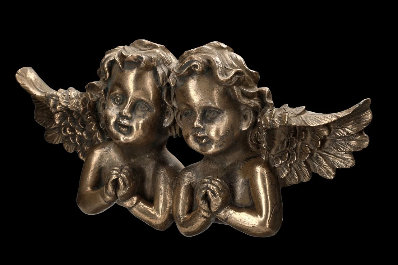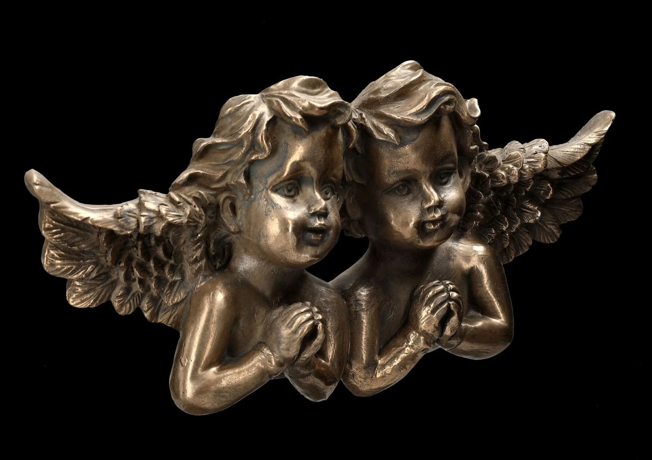 Zu der großen Engelschar in unserem Shop gehört auch diese beschützende Wanddeko mit den beiden betenden Putten. Die Wanddeko zum Hängen wurde aus bronziertem Kunststein (Polyresin) gefertigt und ist 12 cm hoch, 23 cm breit und 4 cm tief. Wenn Sie jemandem zeigen möchten, dass immer Schutzengel für ihn da sind, dann ist diese Wanddeko ein wunderbares und vielsagendes Geschenk.