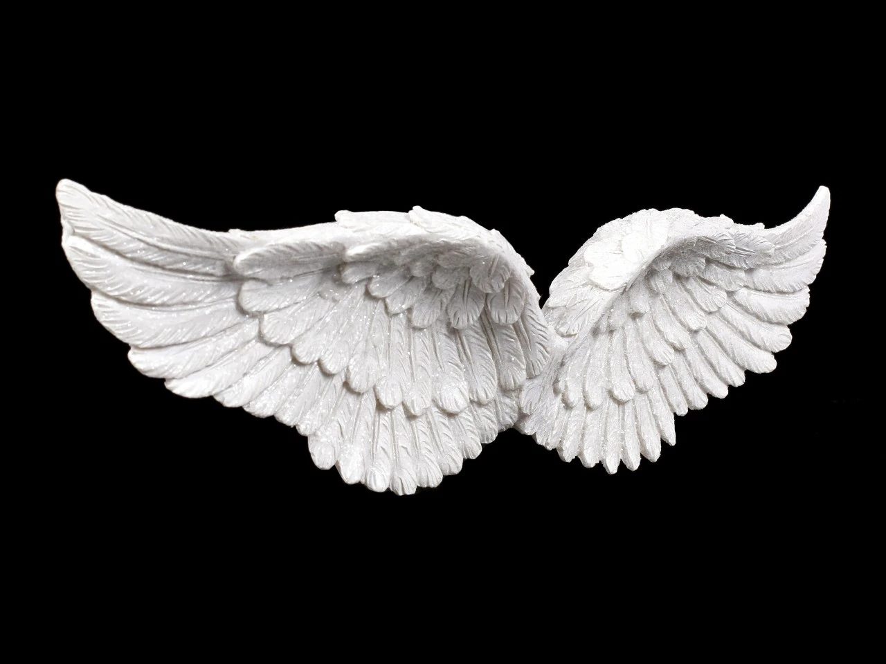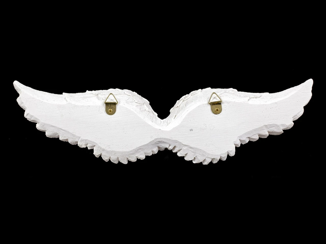 Das süße Engelsflügel Wandrelief lässt sich vielseitig gestalten. Einzeln oder paarweise versetzt an der Wand, die weißen Flügel aus Kunststein (Polyresin) mit Glitzer sind eine umwerfende Deko.