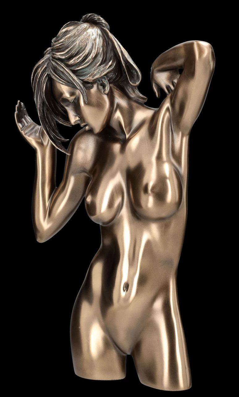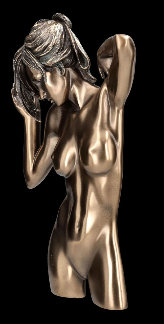 Als würde sie gerade aus dem Bett kommen und sich nach einer schönen Nacht müde rekeln, so wunderbar wirkt dieses schöne Wandrelief mit der weiblichen Aktfigur. Das 24,5 cm hohe, 15,5 cm breite und 4,5 cm tiefe Wandrelief zum Hängen stammt aus der Studio Collection von Veronese. Es wurde sehr detailreich und ästhetisch aus edel bronziertem hochwertigem Kunststein (Polyresin) gefertigt. Die schöne weibliche Aktfigur wird jede Wand ganz besonders schmücken und ist damit auch ein wunderbares Geschenk.