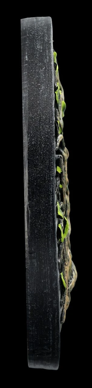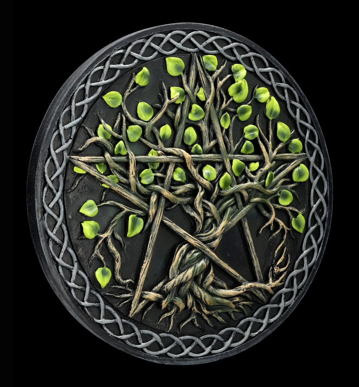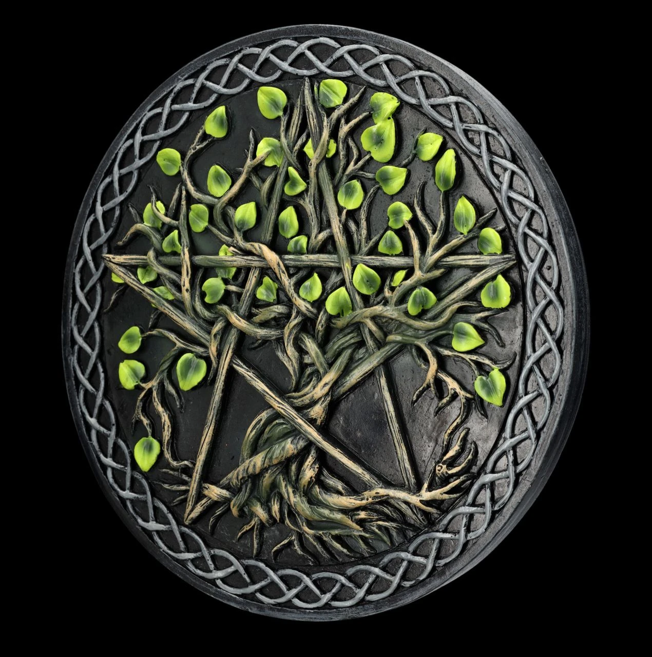 Seit uralten Zeiten scheinen dieses Pentagramm als eines der mächtigsten Schutzsymbole und der Lebensbaum, der für Entwicklung, Wachstum, Fruchtbarkeit, Unsterblichkeit und Heilung steht, untrennbar miteinander verbunden zu sein. Die Äste und Zweige des Lebensbaumes haben sich durch das Gerüst des Pentagramms gewunden und haben es integriert. Das mit einem keltischen Band umrandete Wandrelief mit dem Durchmesser von 19,5 cm und der Tiefe von 1,5 cm wurde sorgfältig aus handbemaltem Kunststein (Polyresin) gefertigt. Das fantastische Wandrelief mit dem magischen und spirituellen Symbol zum Hängen ist nicht nur eine faszinierende Deko, sondern auch ein wunderbares Geschenk für einen lieben Menschen..