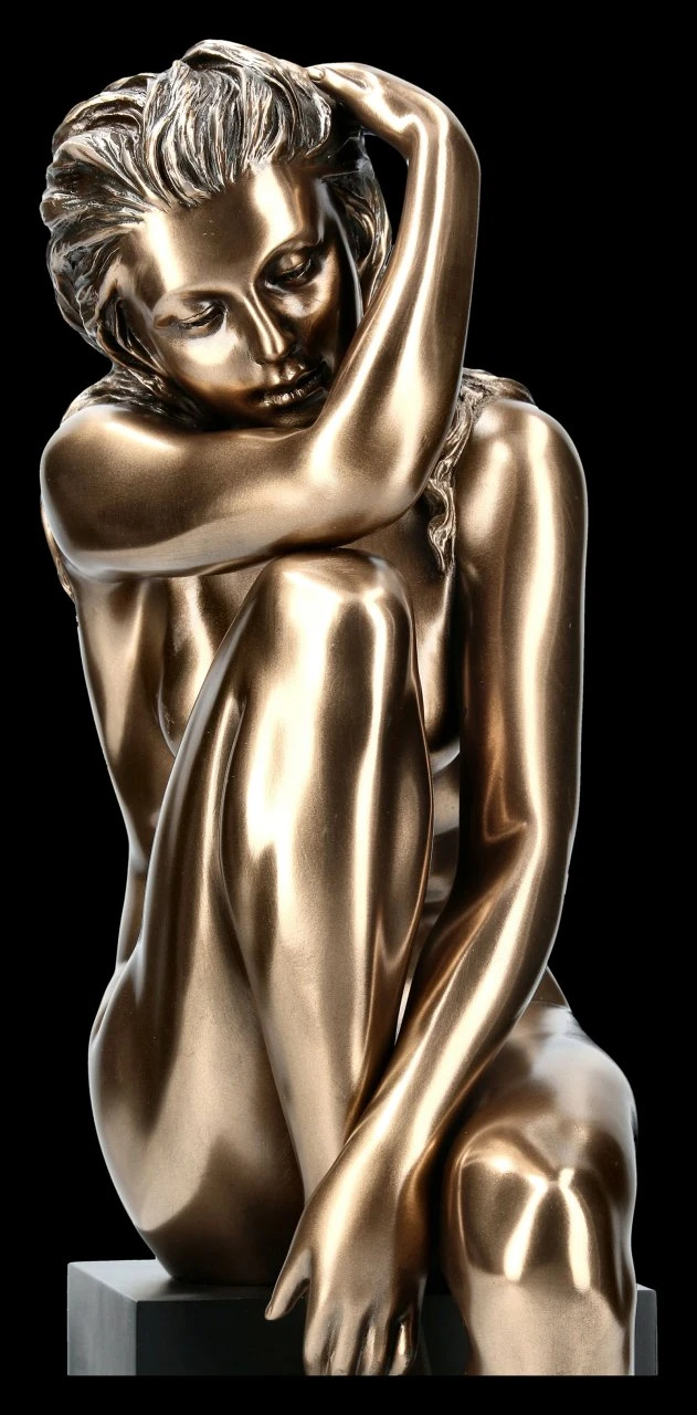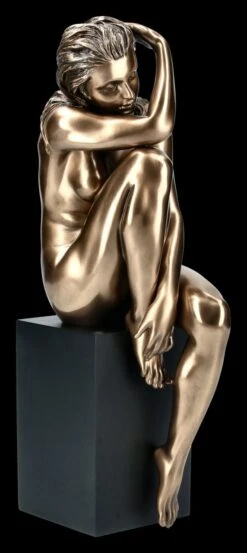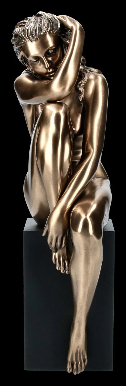 Ganz in sich gekehrt sitzt die anmutige junge Frau auf einem Monolithen und lässt ihren sinnlichen Körper bewundern. Woran sie wohl gerade denkt? Edle Bronze-Optik von Veronese und Eyecatcher Effekt garantiert.