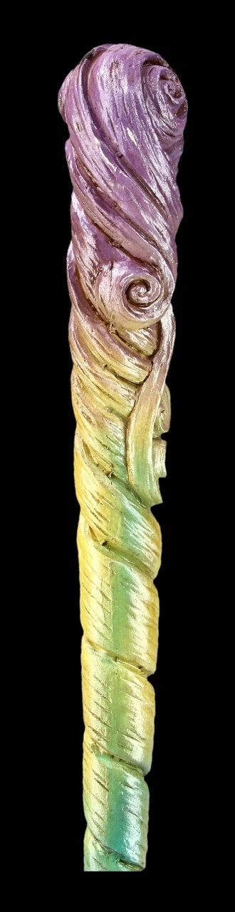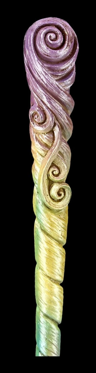 Ein wunderschöner Zauberstab für Elfen, Feen, Hexen und Magier ist dieses magische Horn eines Einhorns. Sehr schön aus liebevoll in zarten Farben handbemaltem Kunststein (Polyresin) gefertigt, liegt er mit der Länge von 24 cm und dem Durchmesser von 2,5 cm gut in der Hand. Ein faszinierend schöner Zauberstab, der als Geschenk sicher viel Freude macht,