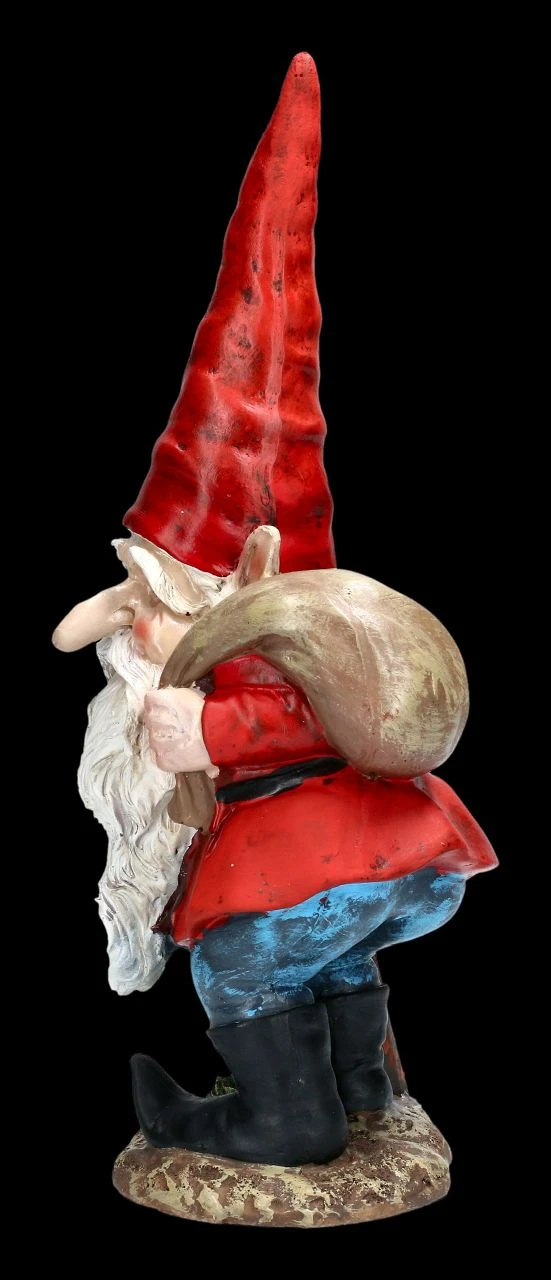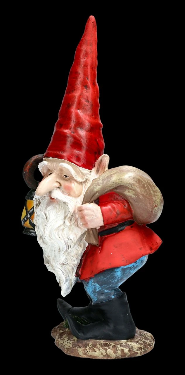 Wer wandert da durch den Zwergenwald ? Damit er sich nicht verläuft, hat der kleine Zwerg seine Laterne dabei, aber was ist wohl in dem Sack, den er über der Schulter trägt ? Diese lustige Zwergenfigur mit roter Jacke, rotem Hut und blauer Hose ist aus liebevoll handbemaltem Kunststein (Polyresin) gefertigt. Der Zwerg ist 29,0 cm hoch, 11,0 cm breit und 9,0 cm tief und freut sich, bei Ihnen ein neues Zuhause zu finden.